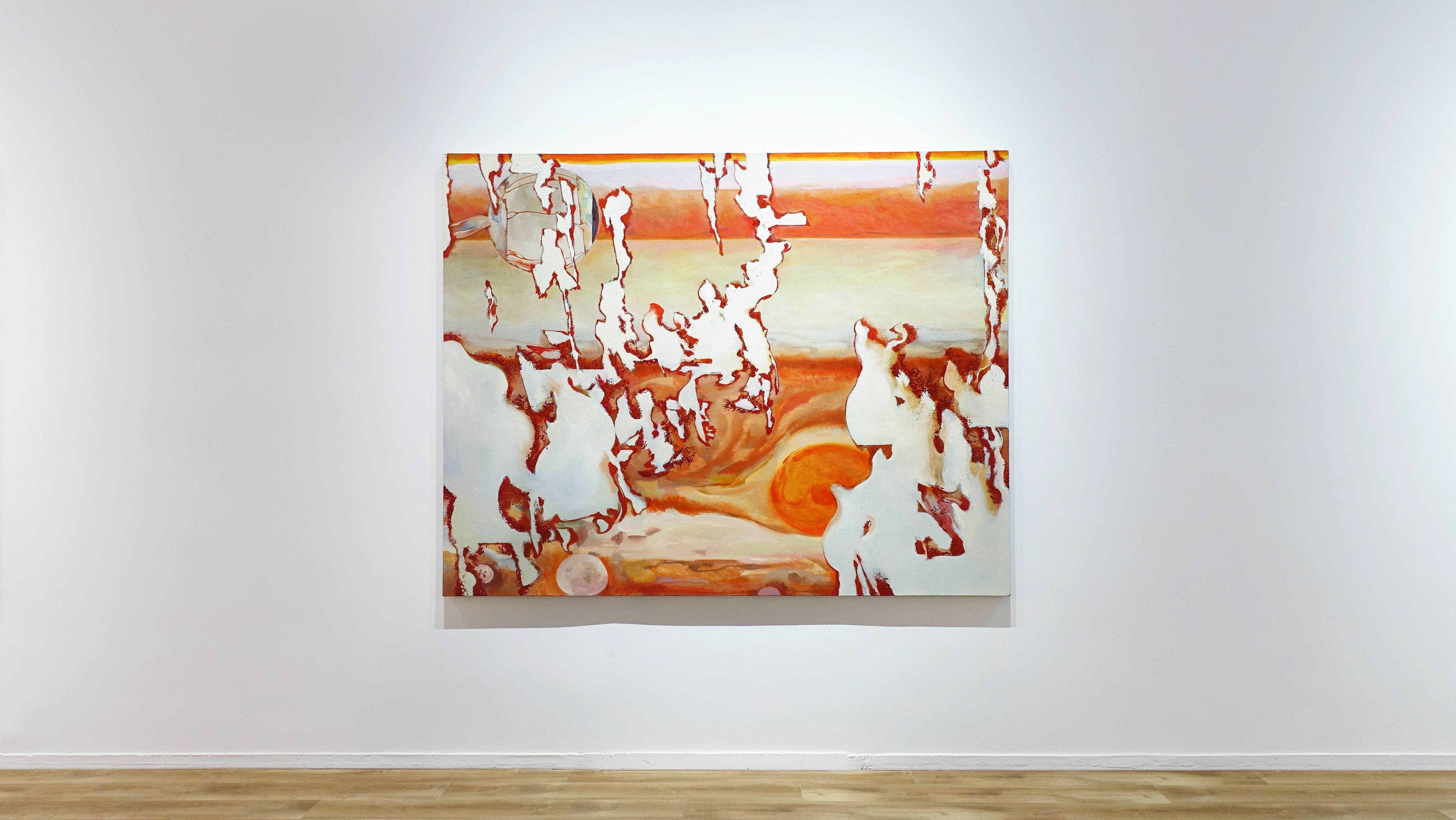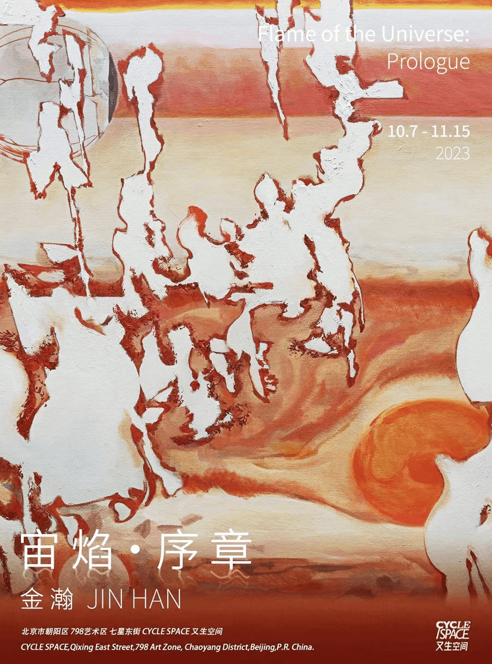 The works of Jin Han are characterized by the grandeur in keynote. In his painting, the coarse painting vestiges look like Pompeii Murals, connecting civilization and history. However, at the same time, the artist, taking astronomic incidents like the Juno probe’s active dis-orbition from the Jupiter as the blueprint, sets up the extraterrestrial calendar, with painting language as its scale. The whole exhibition is inquisitive. When did the kindling material brought in by Prometheus go after being used? Is time independent from human beings? Through making inquiries, efforts are made to explore the truth.
